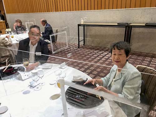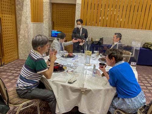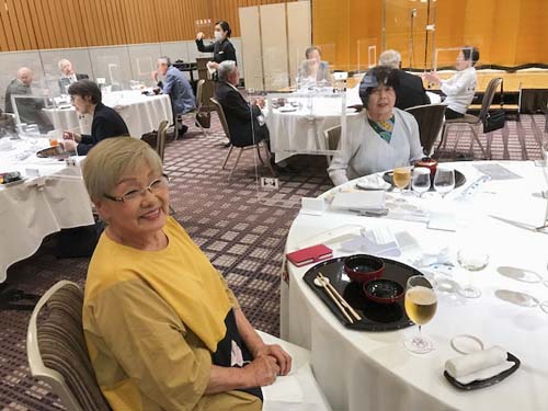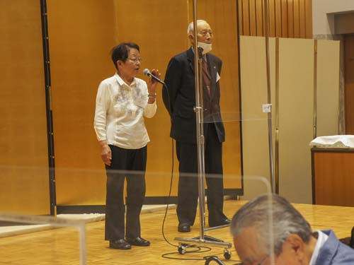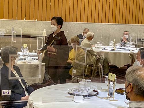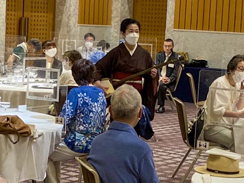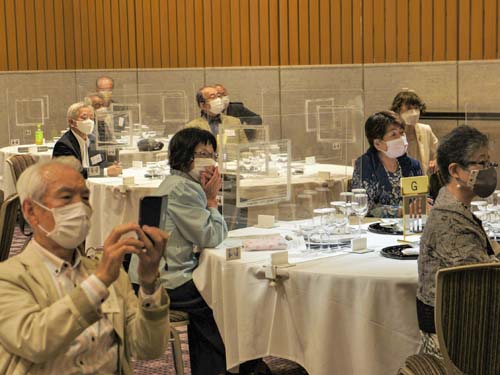 そして締めくくりは「正調 宮津節」。アクリル板に守られた会員も手拍子と歌声で大喝采。